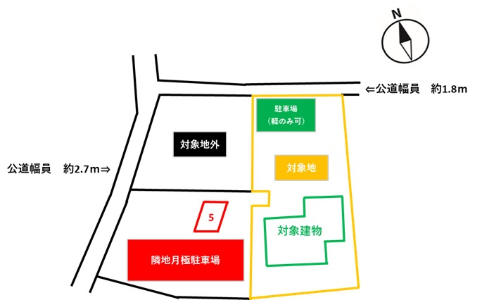 | 接道状況 | 一方 (北側 公道1.8m 間口7.0m) | 私道負担面積 | |