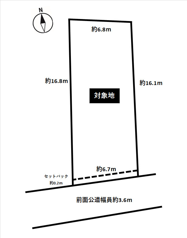 | 接道状況 | 一方 (南側 公道3.6m 間口6.7m) | ||