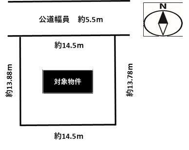 | 接道状況 | 一方 (北側 公道5.5m 間口14.5m) | ||