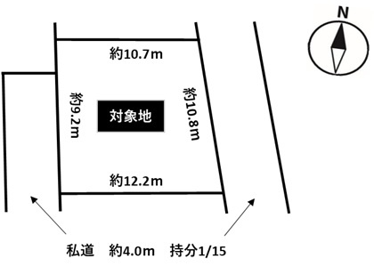| 接道状況 | 二方 (東側 私道4.0m 間口10.8m) (西側 私道4.0m 間口7.0m) | ||