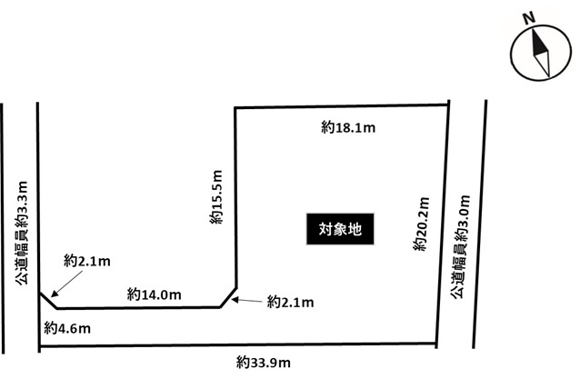 | 接道状況 | 二方 (西側 公道3.3m 間口4.6m) (東側 公道3.0m 間口20.2m) | ||